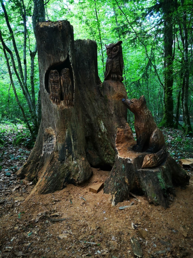- Trolls et animaux fantastiques de la forêt. Avec sa tronçonneuse, il fait revivre les arbres. Sculpture à la tronçonneuse, par Pascal Trunkenwald. Osmose Créations Bois.