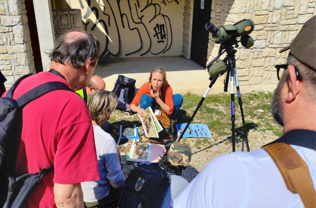 Accompagnés par une spécialiste de la Ligue pour la Protection des Oiseaux, les participants découvrent les espèces présentes sur le plateau. L’approche mêle écoute active, observation et interprétation des comportements, pour mieux comprendre les liens entre les oiseaux et leur environnement.